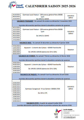 Nous vous informons que toutes les activités du mercredi et les stages sont exclusivement encadrées par des professionnels du Sport et du Handicap ; pour répondre au mieux à vos attentes et pour le plus grand plaisir de vos enfants.